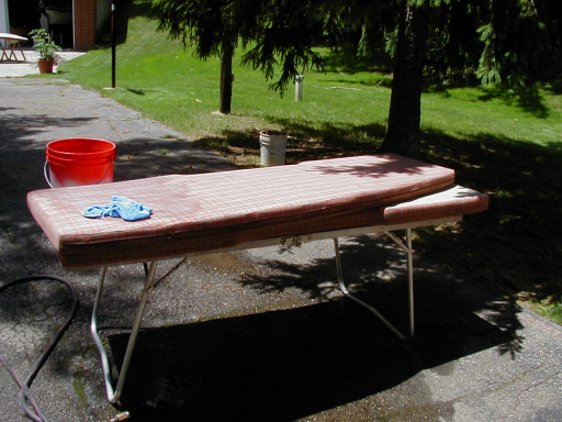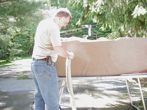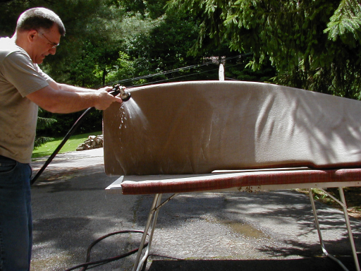 When I put the cushions into the boat, I discovered that one of them still had some water in the center of the foam cushion. If you simply ran your hand over them, they seemed dry. But when you squished the cushion, it was wet in the center. So I left them draped over the boat over night with the fan running on them. |