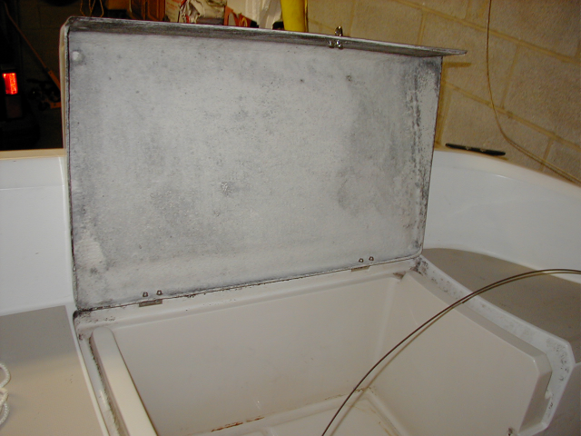 I want to paint the under side of these seats and the under side of the companionway cover. I think the gloss paint will make them more resistant to mold, or at least easier to get clean. I also need to vacuum and then mop everthing inside the cabin. Its gotten cold, so the mopping will have to wait, but I could still do the vacuuming. November 30, 2010Its 55F outside today so I took the opportunity to do a little cleaning in on the boat out in the garage. See the before and after photos below.