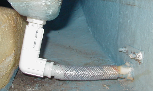 This cockpit drain hose replacement turned out to be quite a project. The hose I got is too stiff to bend enough to make up on the fittings so I got some PVC fittings and made an elbow. Now the space between the fittings is too short. So I have to take the transom fitting out and slide it back onto the hose. What a project! This is not the way to replace this hose! Buy a radiator hose with a suction spring in it like the one that was on there before. Save yourself a lot of work!