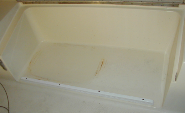 Here's another concern. There's a spot in sole of the cockpit where the gelcoat is cracked.