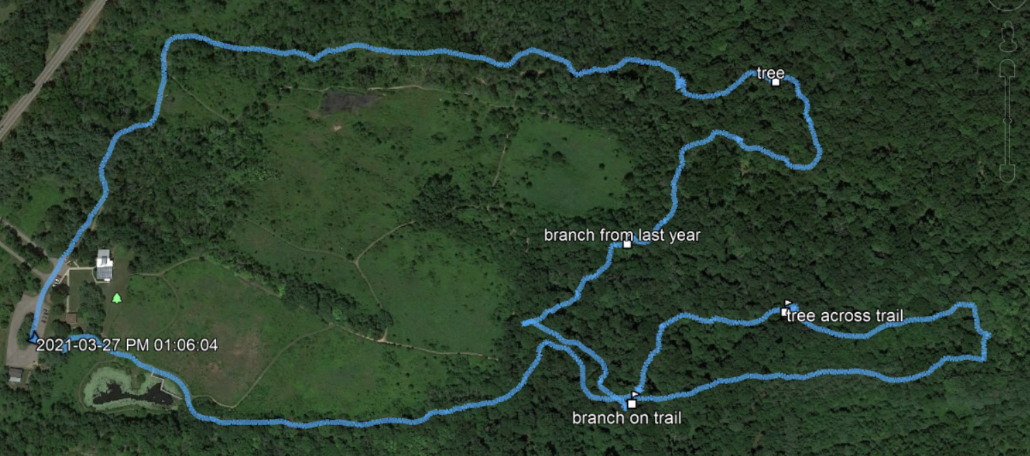 I cleared the one labeld "branch on trail" I worked on but did not complete "tree across trail."