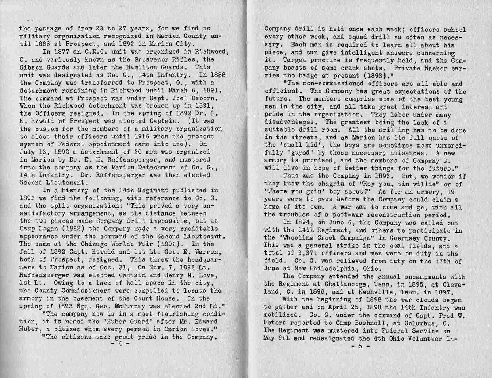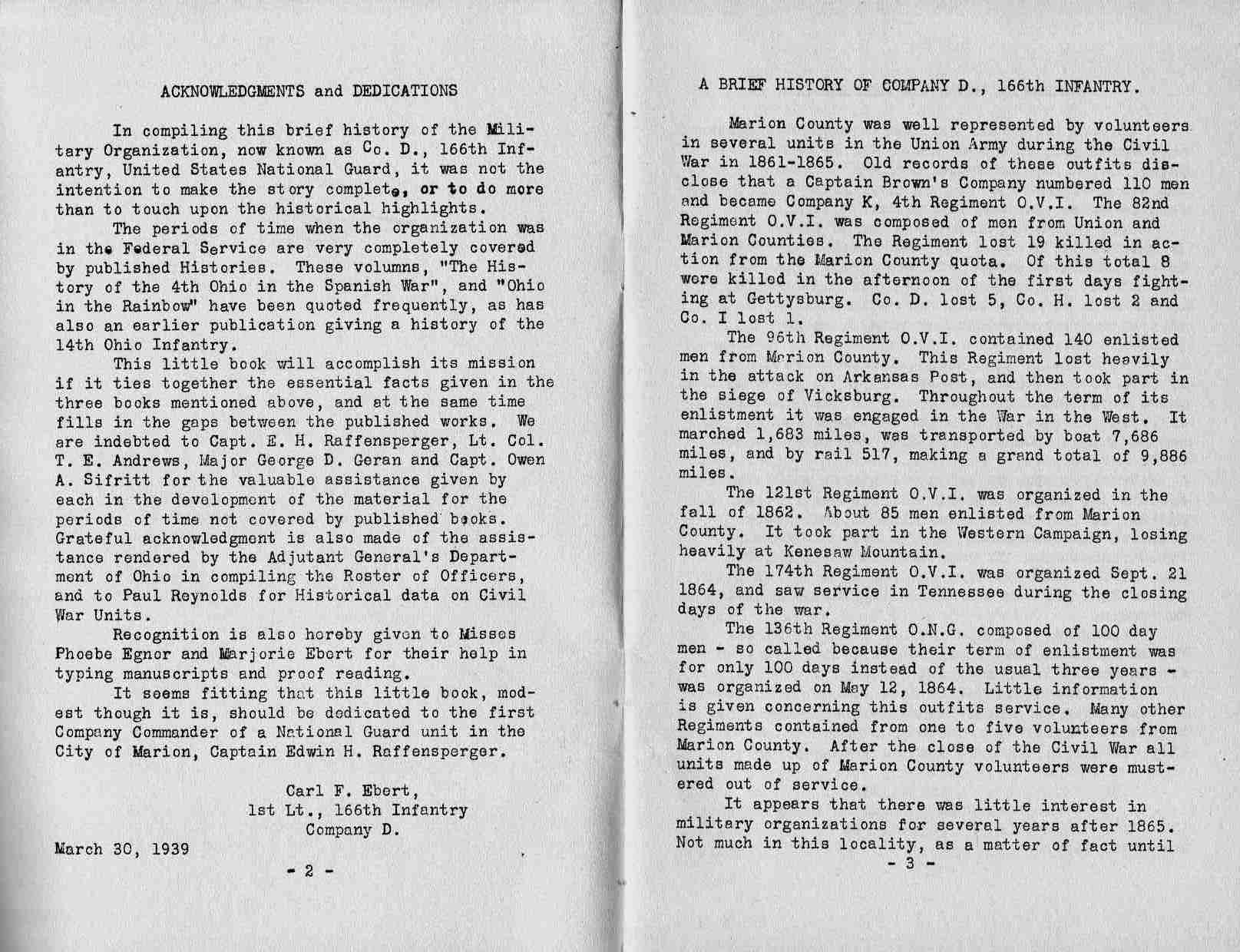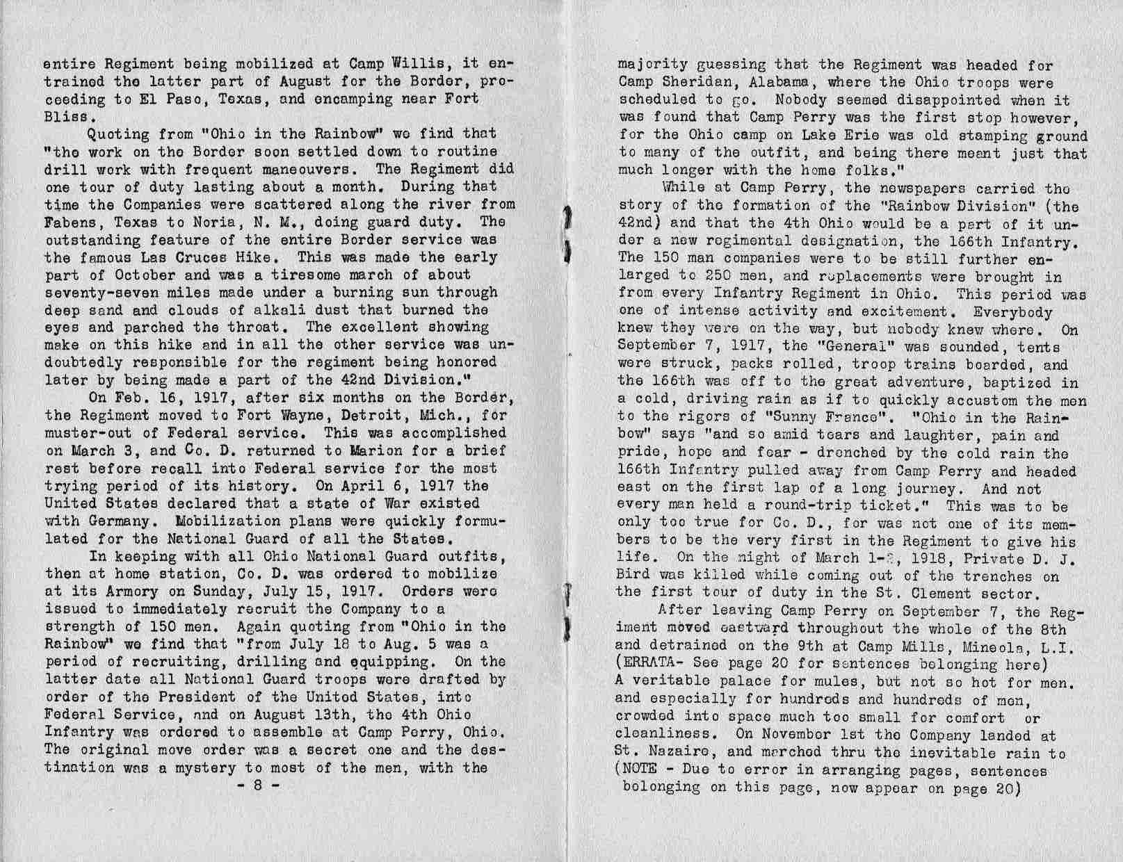 Marion's Own - Home of Company D, 166th Infantry in WW1