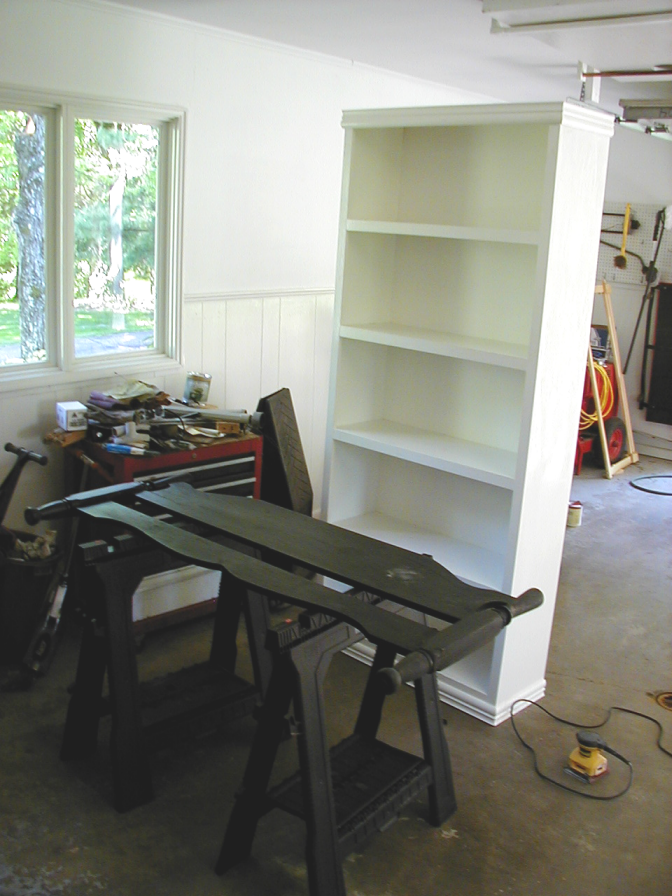 May 2010Mrs. Boyd has me painting bedroom furniture. The bed was natural finish and the bookcase was white (as you can see). Its a big pain in the neck, but I'm getting there. Its being painted satin black - you can see that on the bedstead in the photo.