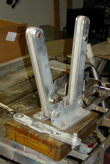 26, 2009I was on my way to Pittsburgh on Monday evening, so I took the engine mount with me to consult with my dad. As I half expected, he offered to take on the rebuild project. I got on-line and ordered bushings for the pivot points and had them shipped to house.Dad called and said he had the rebuild well underway and asked if I wanted to come up and participate in the finishing up. I said yeah, but Connie couldn't be ready to leave until 4:34 so we just got there in time to meet him for dinner. After dinner we went to his house and he showed me what he had done. There wasn't really time to work on it, so we just talked about