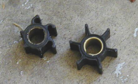 I was able to buy a new pump kit off the shelf at the marina. This is probably the most common part to be replaced. I could have gotten it cheaper over the Internet but this way I had it when I got home with the motor.