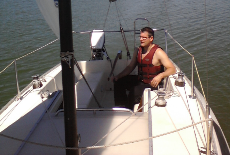 Bo said he enjoyed it and would like to go again. I hope we can get to do that before too long.It was perfect weather for sailing. Mid 70s, and a nice breeze. We didn't get to head to the lake until after 5PM, but there was still a decent breeze. We were on the lake until about 7PM.
