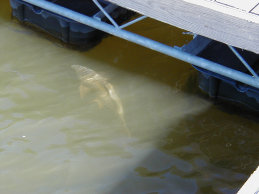 Big carp swimming in the slip. There are lots of these guys. Not all this big.