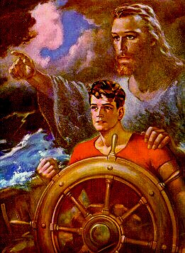I wonder if Sallman intentionally painted Christ proportionally larger than the sailor to illustrate Christ's power or did he just deem it necessary to make Christ more visible behind the sailor? It does make the picture more appropriate for the boy growing up, as the sailor looks more like a boy in comparison to Christ.September 17, 2010