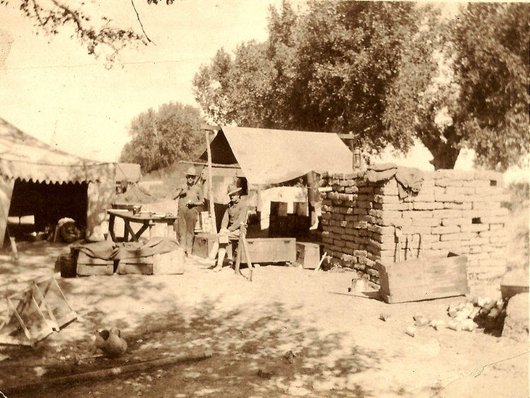 A camp scene. Not sure where, but it does look to be in arid surroundings. |