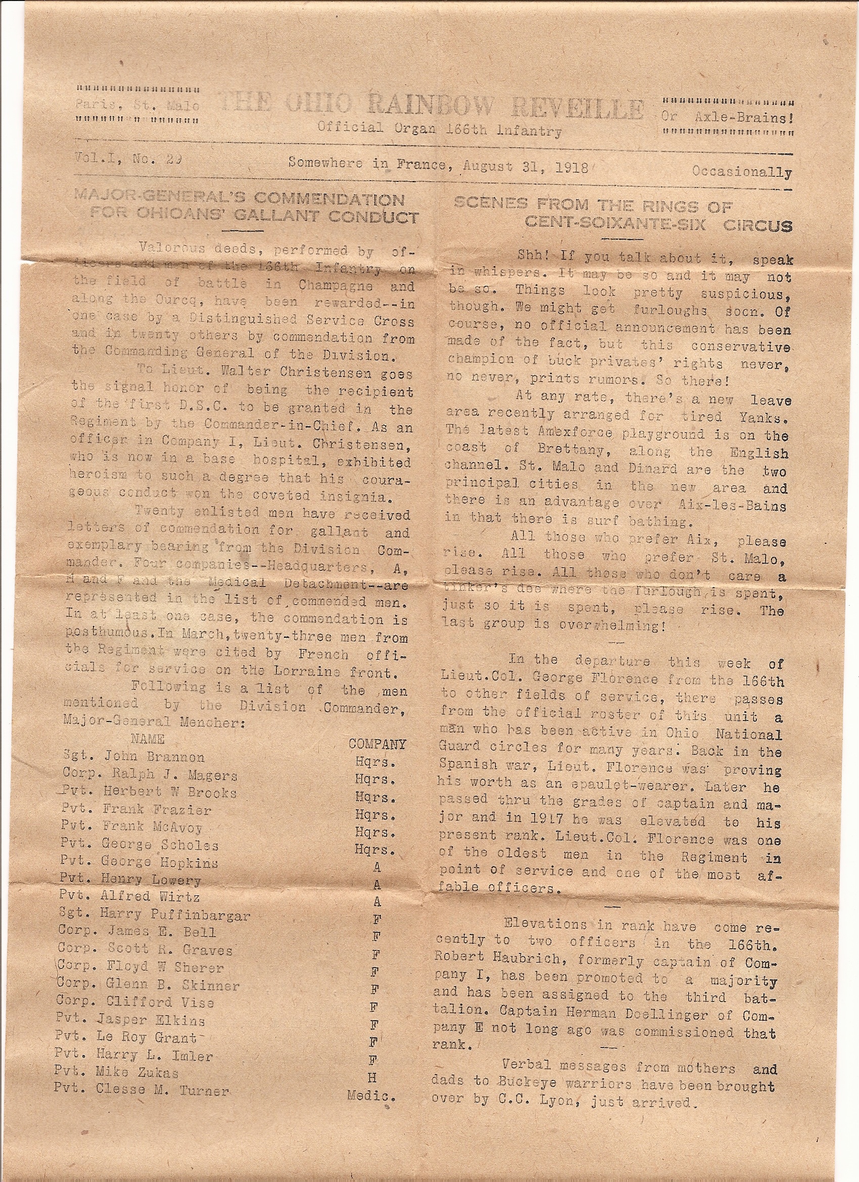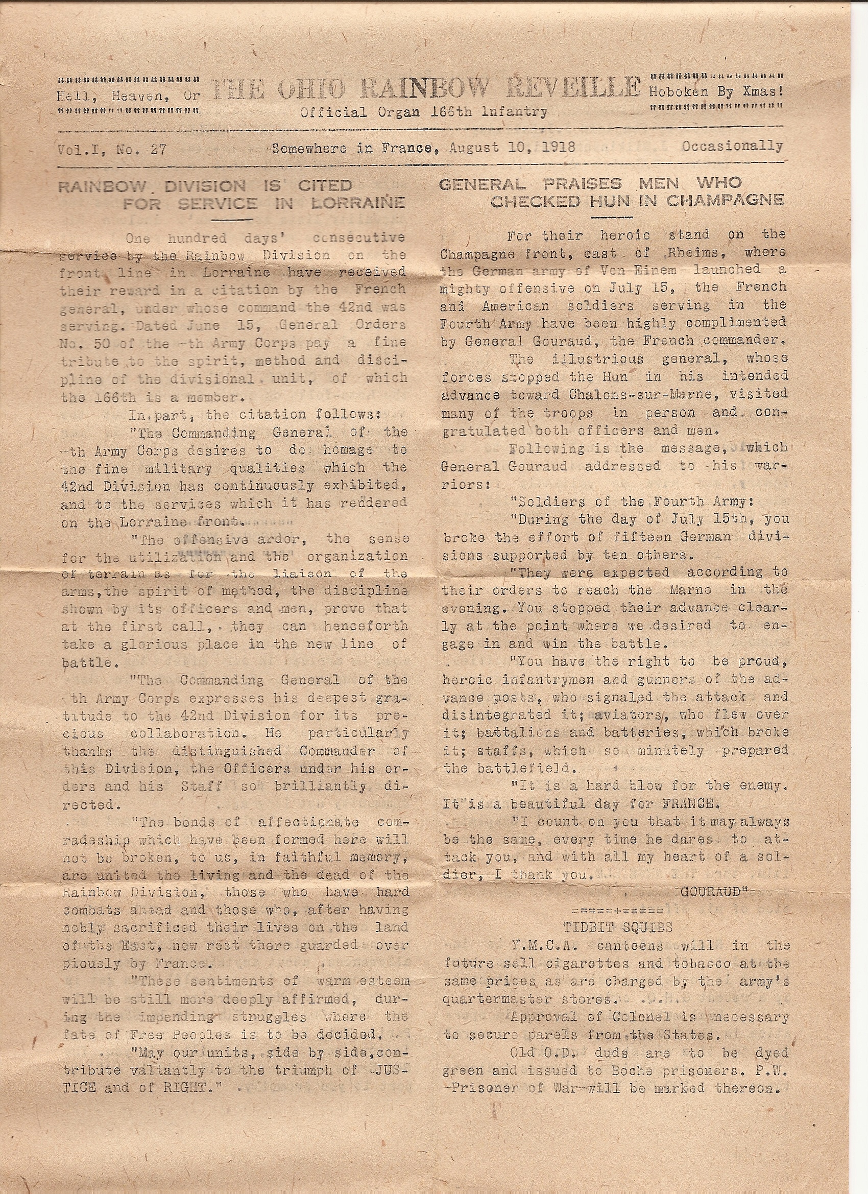 Boyd in the letters he wrote home during his service with Co. D, 166th Inf. 42 Div in 1918.