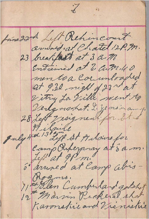 July 23rd Unloaded in Lefert at 5 p.m. hiked to Nan- teuil arrived at 7:30 p.m. |