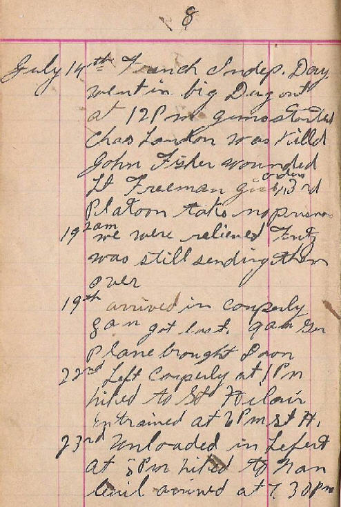 July 14th French Indep. Day went in big dugout at 12 p.m. guns started