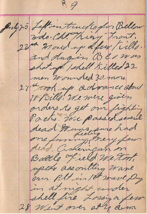 July 22nd Left Conperly at 1p.m. hiked to St. Hiloir entrained at 6 p.m. St.