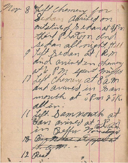 Sedan arrived on outskirts of Sedan at 9 p.m.
