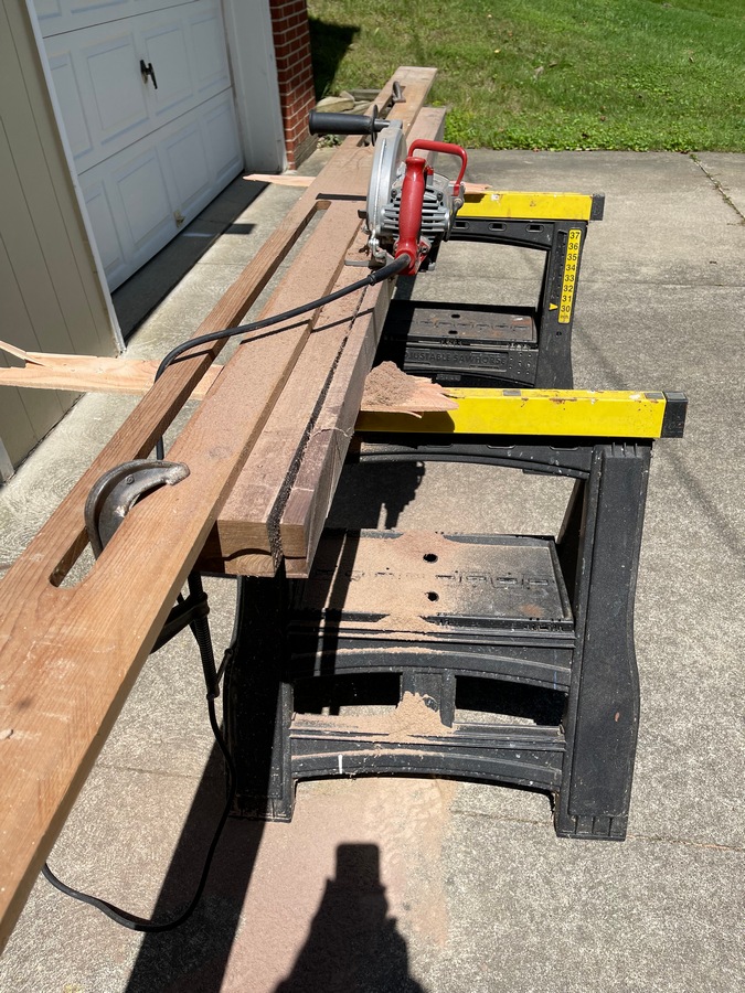 A couple of months ago, we had a big wind storm that brought down a large black walnut tree down on our bridge. It broke two of the wooden guard rails. So I decided to mill one of the walnut logs to create two new rails for the bridge.