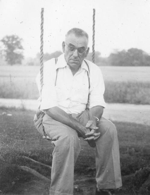 My primary remembrances of Grandpa are of him sitting in his huge gray rocking chair in the front room of their house at 306 Spencer Street in Marion. He would sit there with his big hand held out just tempting us to lay our hand in his so that he could grab us and tickle us until we screamed. And of course we did get caught in his trap, and then he did tickle us, and of coarse we screamed and Grandma would say "Oh Dusty! Leave those kids alone."