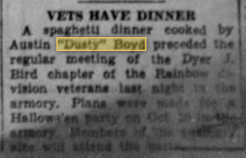 After returning to Marion, he was active in the Dyer J. Bird chapter of the VFW for some time, attending reunions etc. Here's an article about him cooking dinner for the chapter in 1933
