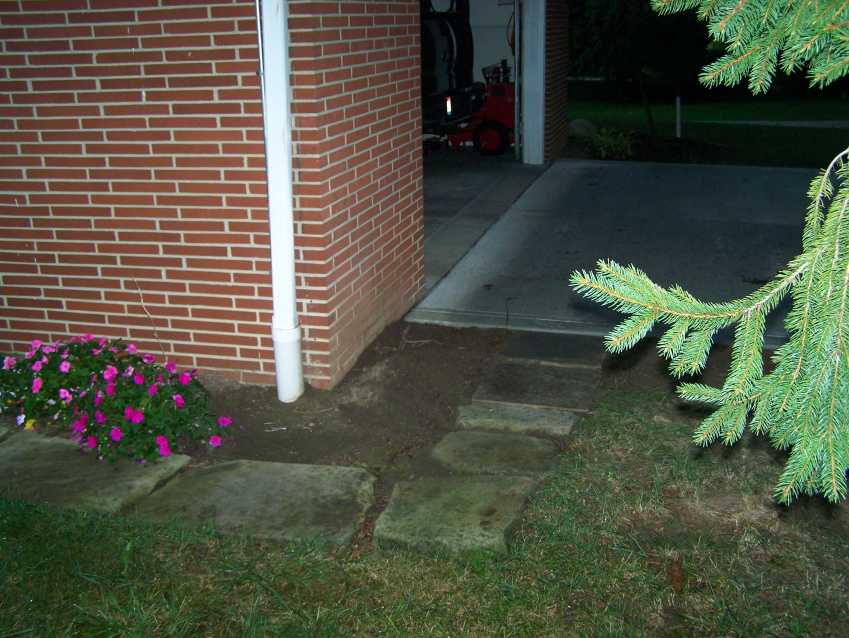 | August 6, 2011. I finished the wiring and laid two new sandstone steps for the walk. |
