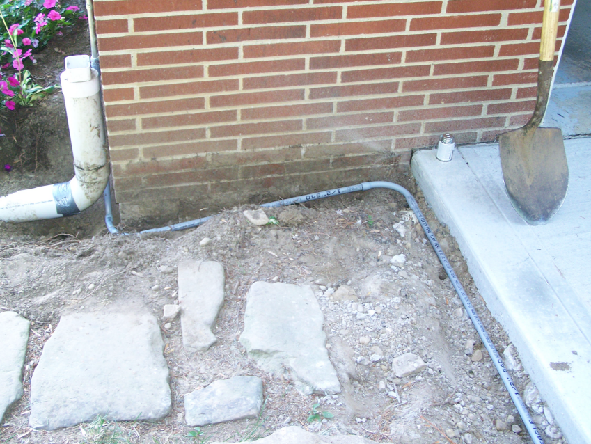 The new conduit running along the driveway.