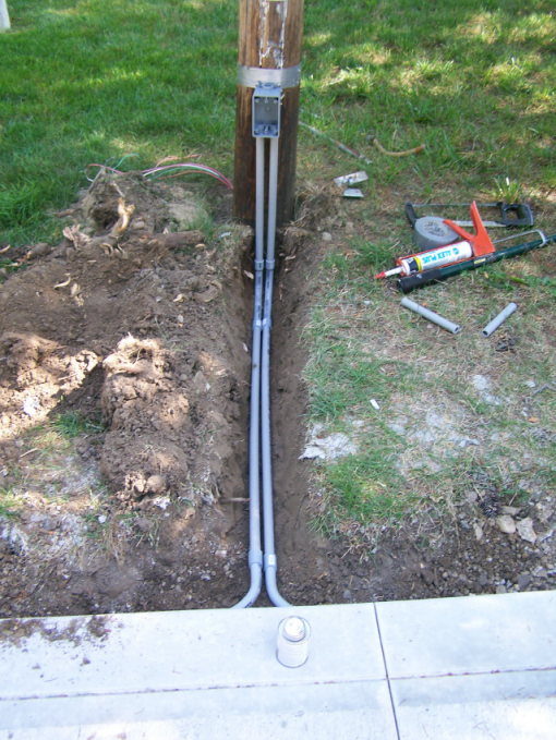 | Running along the driveway and then over to the pole to feed the light. |
