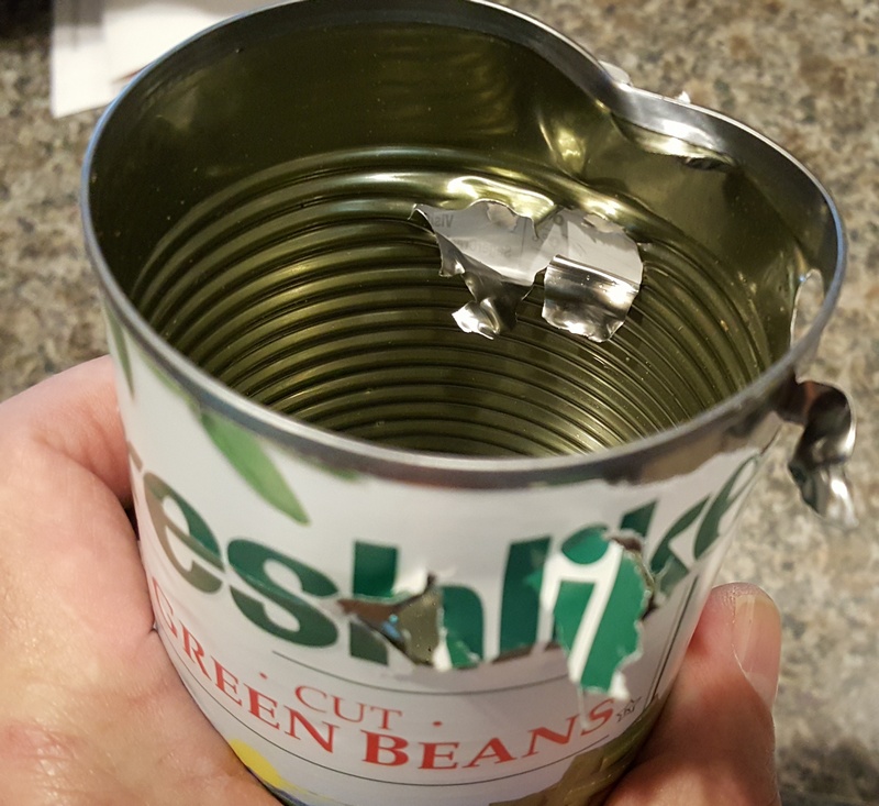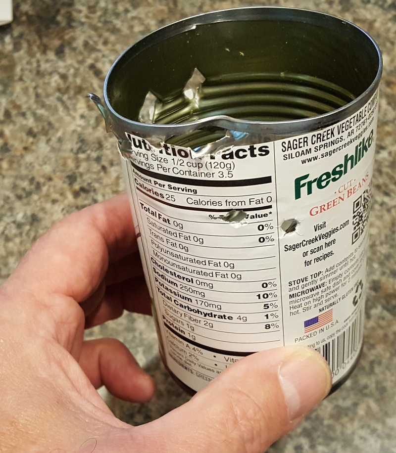 top, right at the can bead The holes that look like clean cut holes aren't. The clean cut is only in the paper. See the picture below at the hole from the inside of the can.