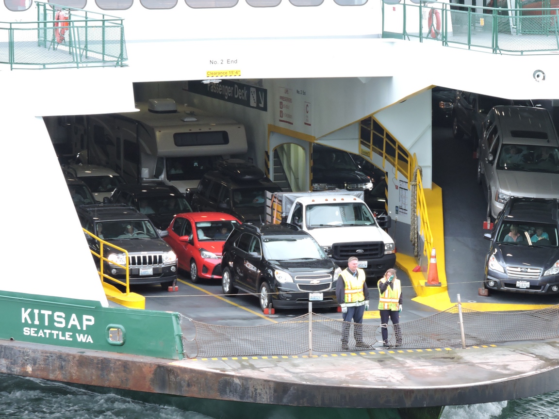 The Kitsap. We rode this ferry back to Anacortes. I counted 130 vehichles coming off it when it unloaded at San Juan Island. This was smaller than the big one we rode in the morning.