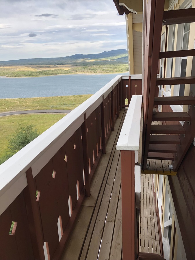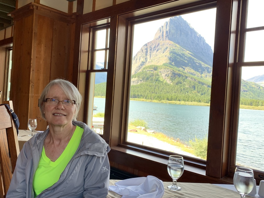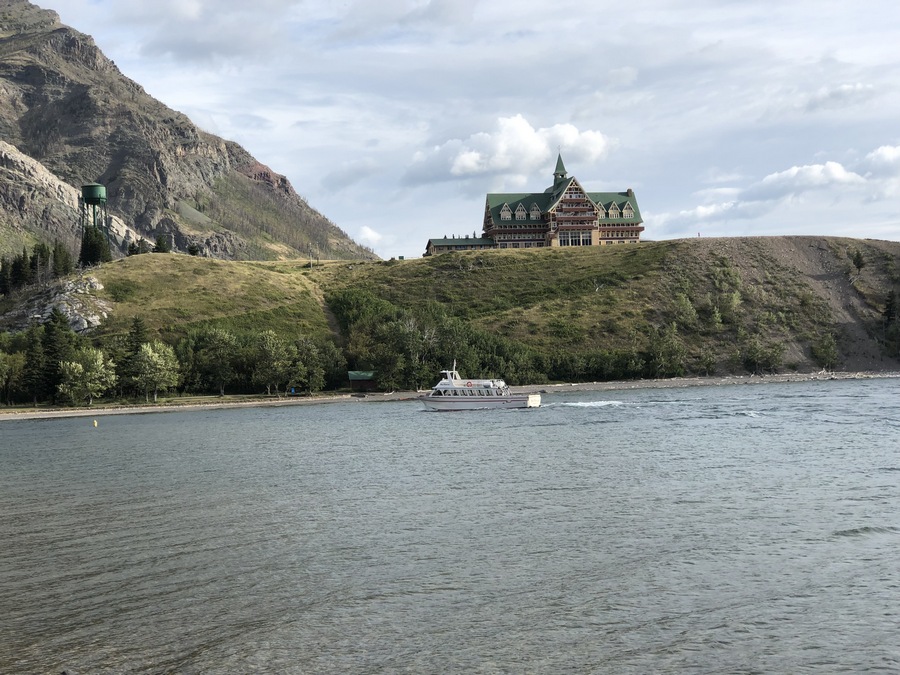 We had lunch at Many Glacier hotel. It was mediocre at best. Connie's roast beef sandwich was terrible and the server brought a new one. At 2PM we took a boat ride. It's actually two boat rides. You walk
