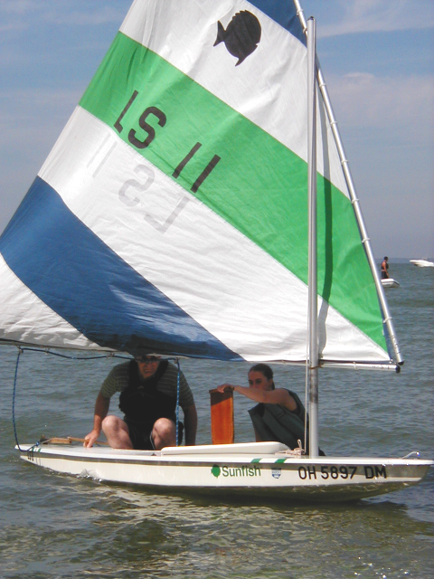 Once I was back onboard, Shelly decided she wanted to get wet too (I think you need to have this natural inclination to be a Sunfish sailer) and she went over the side.